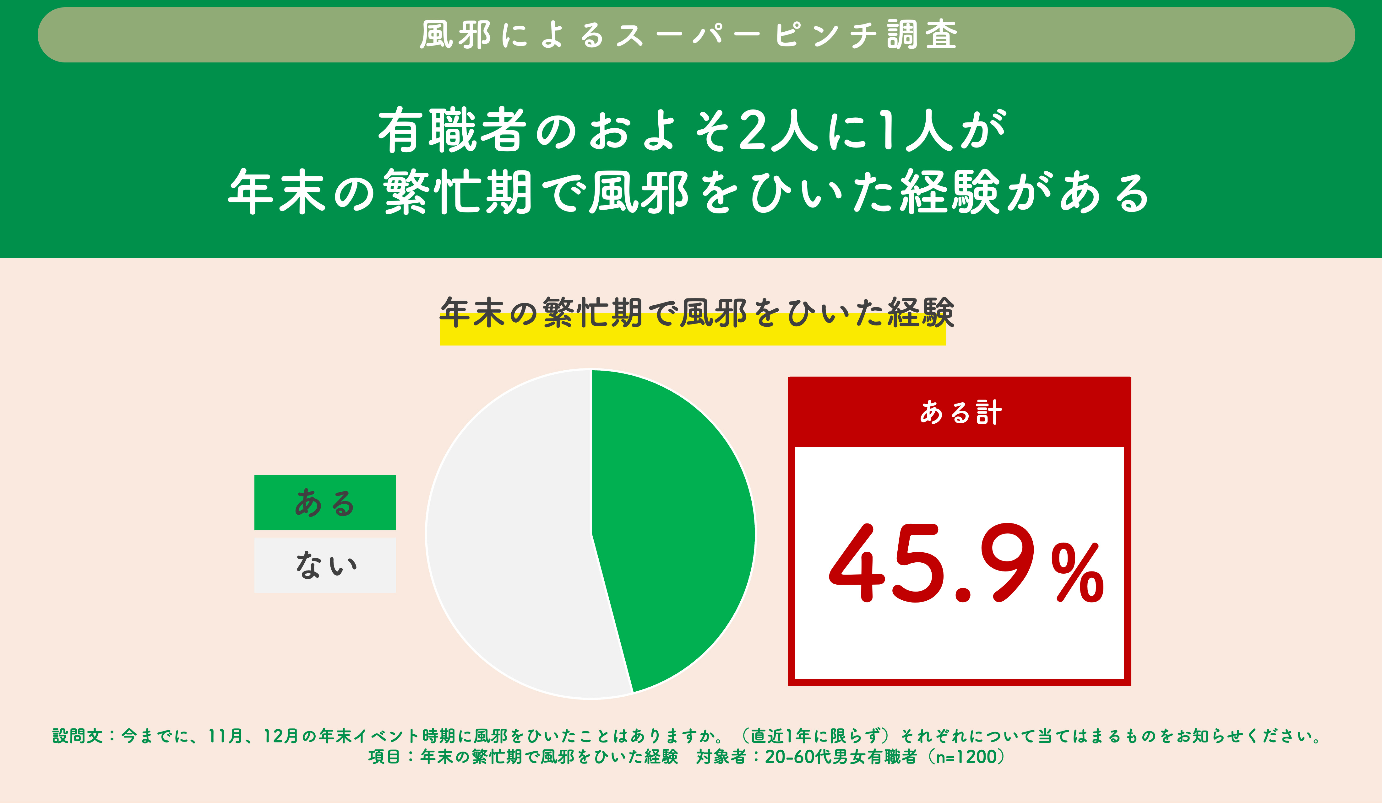 2.ビジネスパーソンのおよそ2人に1人(45.9%)が年末繁忙期に風邪を引いて、ピンチに陥った経験あり