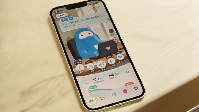 収集した健康データは、『ウェリー』アプリより確認する。同名のパーソナルヘルスケアAIが導入されており、日々の生活において、健康を維持するためのアドバイスをくれる。