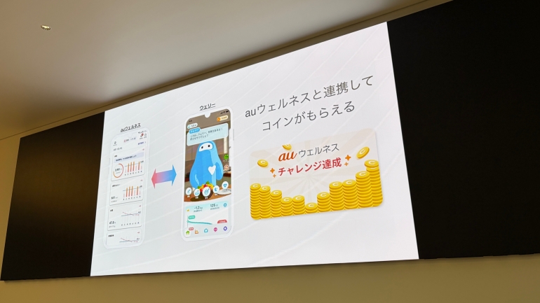 『Smart Recovery Ring/INFOBARコラボモデル』を使用する場合、ウェリーアプリと『auウェルネス』アプリを連携させることで、auウェルネス内で利用できるコインも獲得できる。