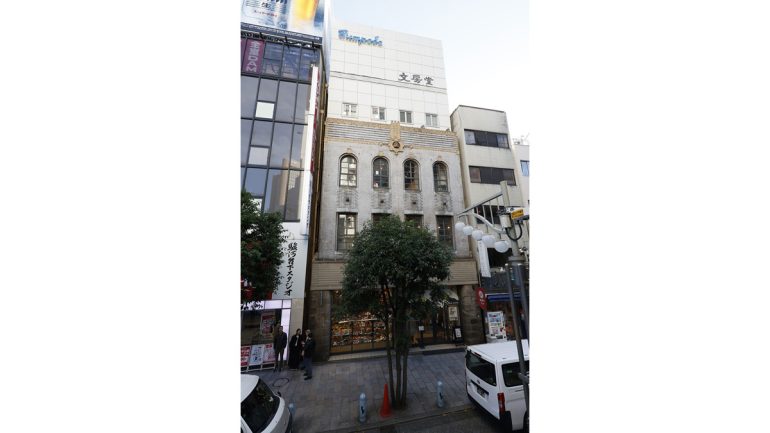 創業明治20年の老舗画材店・文房堂の建物も、神保町を代表する美しい建物のひとつ。平成2年に改築工事のため、店舗部分は改修されたが、関東大震災でも焼失しなかった外側部分を残している。この外観に愛着のある人は多く、改修時に多くの人から「残してほしい」という声が上がったという。