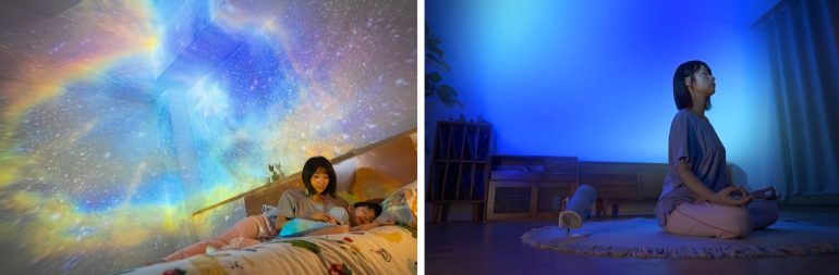 このほか、マグネット式で簡単に装着可能な2種類のレンズ「Aladdin Lens A」「Aladdin Lens B」も付属。「Aladdin Lens A」では画面を5倍に拡大し、星空観察で幻想的な雰囲気を楽しめ、「Aladdin Lens B」ではやわらかな光で癒しやリラックスした雰囲気を演出。2つのレンズで合計100種類以上(※3)の厳選素材を収録し、専用アプリ「ほしぞらさんぽ」からいつでも体験できる。