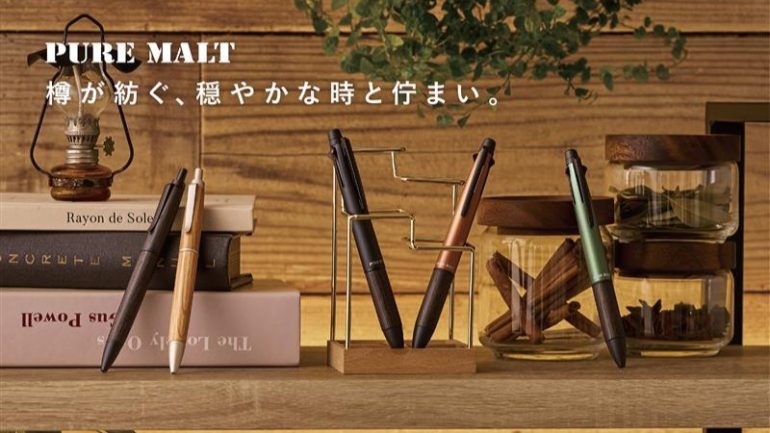 三菱鉛筆は、ウイスキーを熟成した樽材をペン軸に再利用した「ピュアモルト」シリーズの新製品として、“クセになる、なめらかな書き味。”の「ジェットストリーム」リフィルを搭載した「ピュアモルト ジェットストリームインサイド シングル」と「ピュアモルト ジェットストリームインサイド 多機能ペン 4&1」を2025年12月16日に発売する。