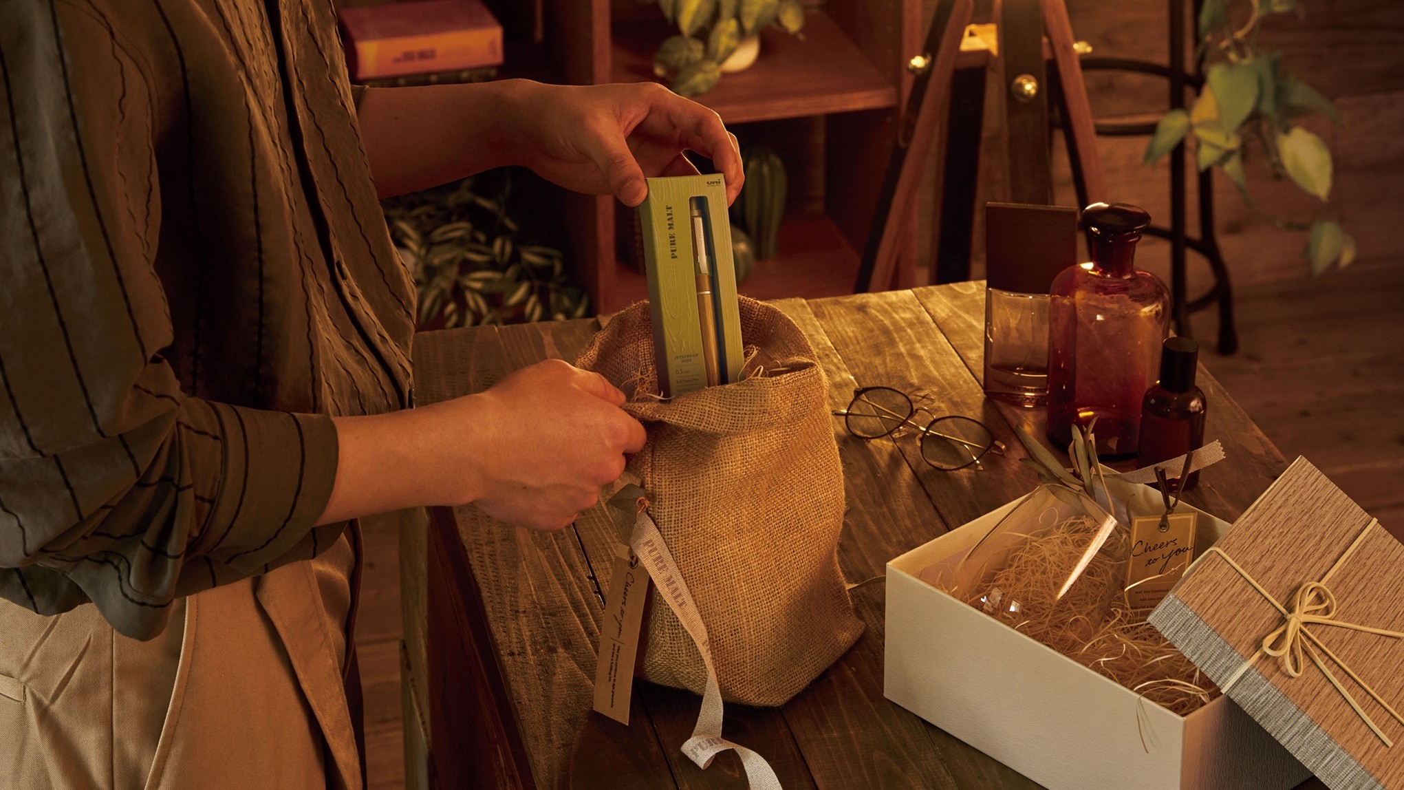 今回は、“uni MATERIAL JOURNEY 旅する素材。”の中でも、幅広いラインアップを展開し、中心シリーズであるウイスキーを熟成した樽材をペン軸に再利用した「ピュアモルト」を、“樽が紡ぐ、穏やかな時と佇まい。”という新たなキャッチコピーの下、リファイン。