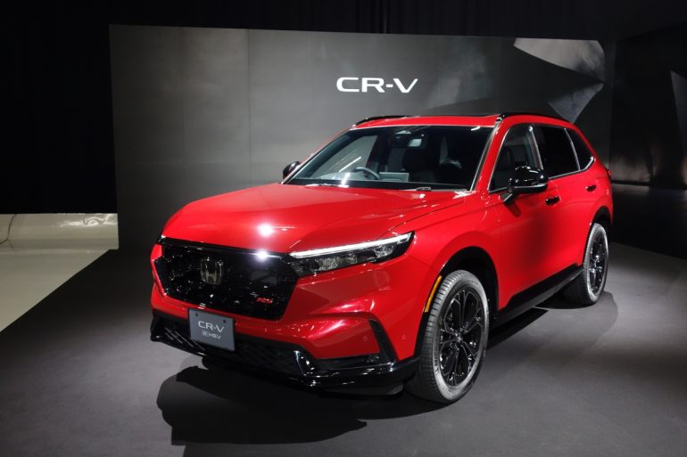 新型CR-Vの日本仕様は2022年に北米で販売を開始した6代目のタイ生産の日本専用仕様ということになり、「感動CR-V」をグランドコンセプトとして登場するのだが、顔つきはCR-V e:FCEVとは別もの。