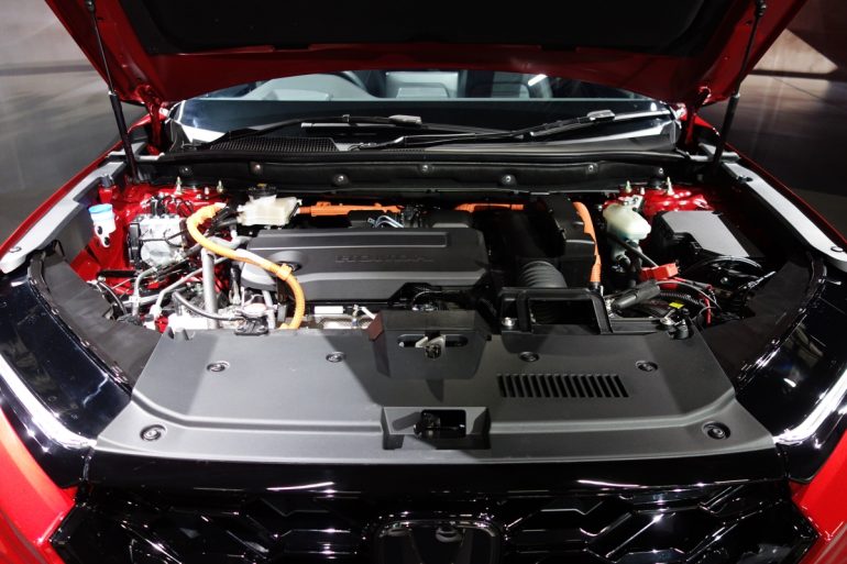 ちなみにアコードe:HEVモデルのスペックを参考紹介すると、エンジン108ps、18.6kg-m、モーター184ps、34.2kg-mとなっている(CR-Vとは異なる可能性あり)。