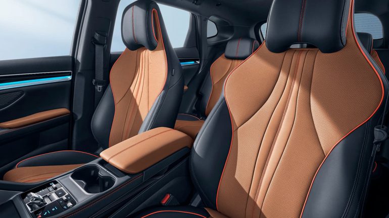 一方インテリアは、深みのあるブラック基調の空間に、ブラウンのアクセントとアンビエントライトを配し、海洋シリーズにふさわしいモダンなデザインにまとめられている。海をイメージしたフォルムのスポーツシートは、身体をしっかり支えつつ、前席にはヒーターとベンチレーションを備え、長距離でも快適な姿勢を保てる設計。
