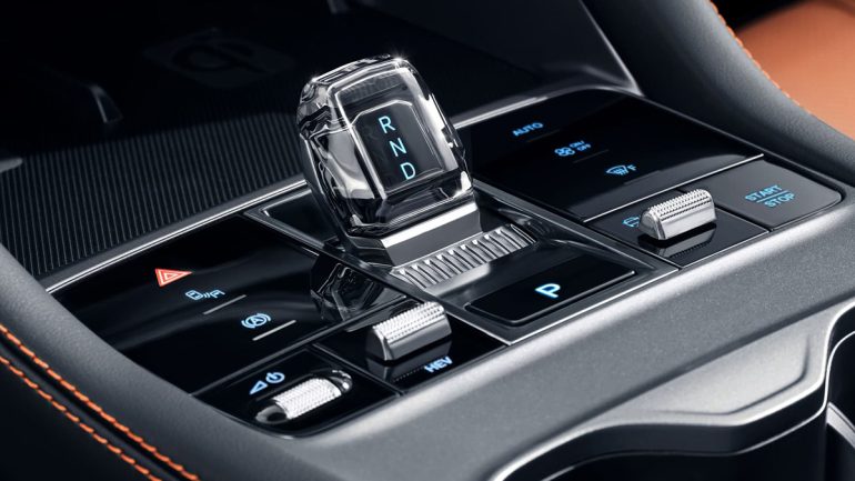 さらに視線が集まるセンターコンソールには、クリスタルを思わせる電動シフトレバーや2基のワイヤレス充電を配置し、上質感と機能性を両立。また2,765mmのホイールベースが確保する後席空間は大人がゆったり座れる広さを持ち、ラゲッジは日常用途から旅行まで幅広く対応できる容量とフラットな床により、使い勝手の良さを追求している。