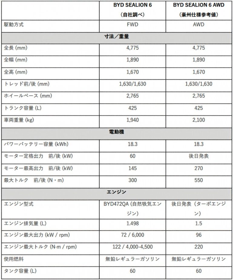 関連情報:https://byd.co.jp/e-life/cars/sealion6/