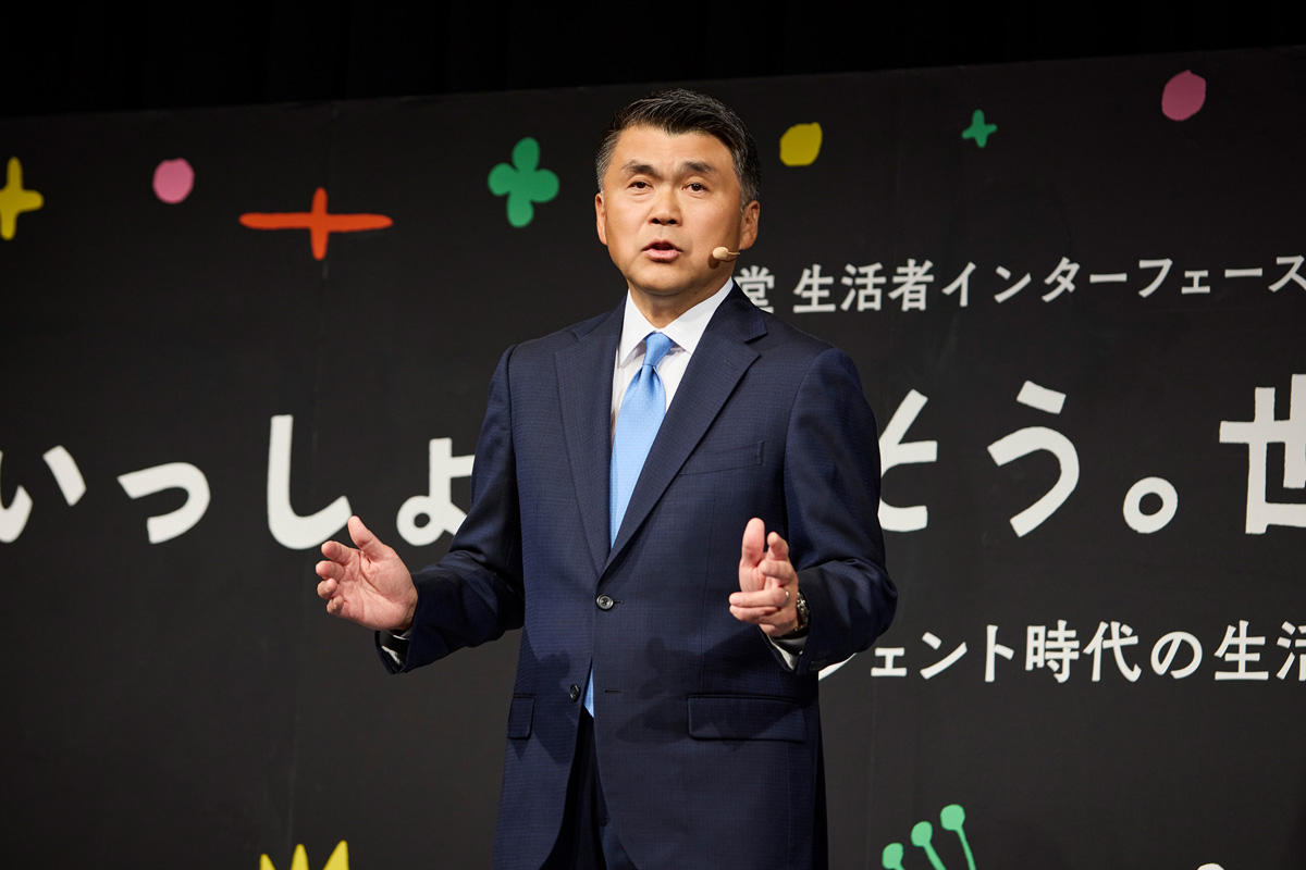 企業独自のAIエージェントが生活者と対話することで、「1万人の生活者の1万種類の欲求に、1万通りの対話で新たな提案をするような、無限の可能性をはらんだ世界がやってくる」と述べた。