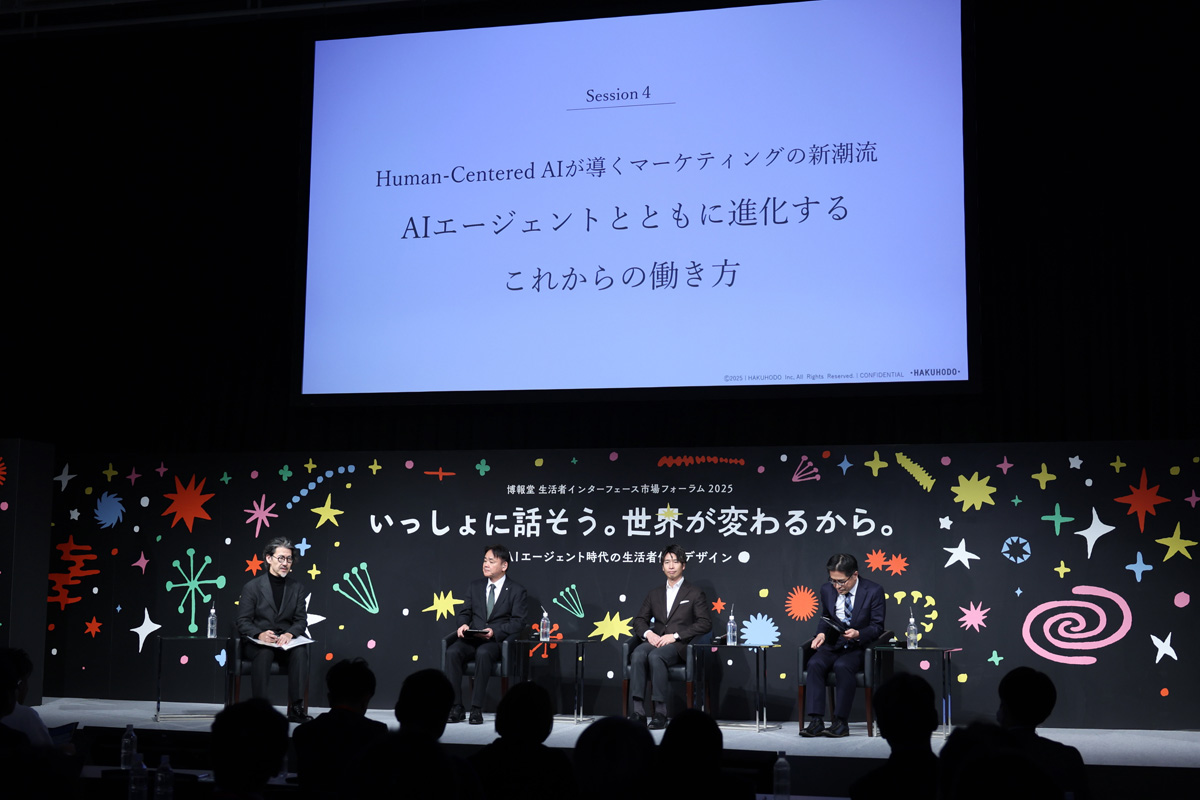 セッション4は「Human-Centered AIが導くマーケティングの新潮流 -AIエージェントとともに進化するこれからの働き方-」というタイトルのもと、博報堂 執行役員の中村信氏がファシリテーターを務めた。