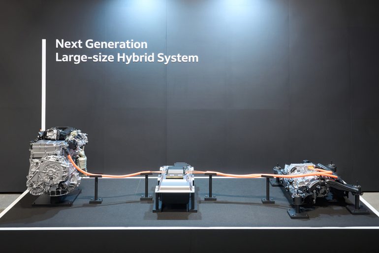 今回のワークショップでは、厳しい環境規制への対応を見据えた新開発のV6エンジンに加え、高効率と低コストを高次元に両立した新開発のドライブユニットやバッテリーパックを備えた、次世代の大型ハイブリッドシステムの主要技術を初公開した。