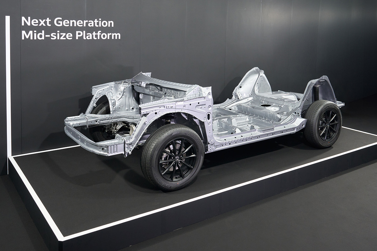 ●車体構造の見直しと新たな設計手法の採用により、ハイブリッド車向けプラットフォームの重量を現行モデル比で約90kg軽量化。走りの楽しさと燃費性能の両立を実現。