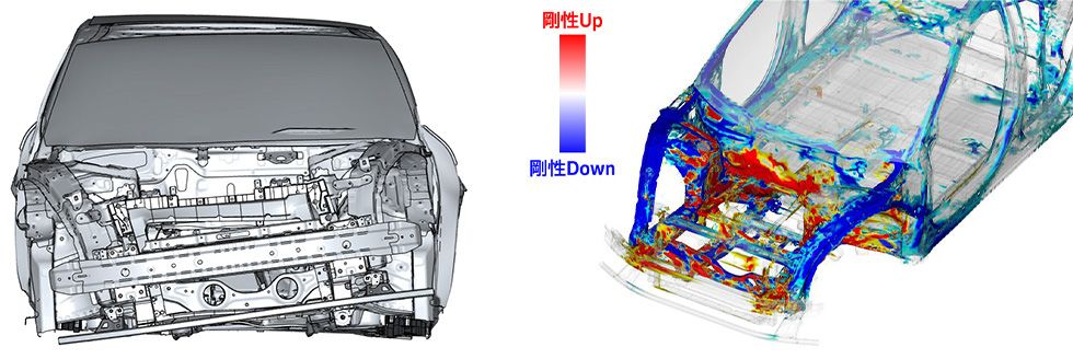 ●ダイナミクス性能を左右する操縦安定性の新たな指標として「新操安剛性マネジメント」を確立。ボディー剛性の最適化により、車体を軽量化すると同時に、コーナーリング時に車体がしなるような挙動を与えることで、タイヤへの荷重をコントロールし接地力を向上。これまでにない操縦安定性と軽快で気持ちの良い走りを実現。なお、この技術はEV向けのプラットフォームにも採用予定。