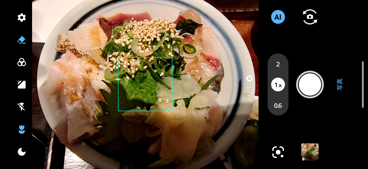 料理も、色鮮やかに撮影することが可能だ。ただ、ほかの端末のカメラと比較すると、やや色がコッテリしすぎているきらいもあった。この辺のチューニングは、シャープが他の機種で協業しているライカの絵作りに寄せている印象を受けた。ただ、それらとの比較でもやや誇張気味に見えた。この辺はアップデートでチューニングされていくことを期待したい。