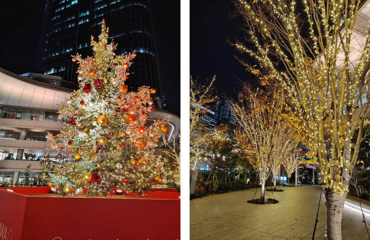 そのカメラも、ミッドレンジモデルの中ではかなり健闘している画質の高さだ。特に夜景を撮ったときのバランスがよく、暗いところはしっかり締まって見えるが、ノイズは少なく、明るいところをより際立たせている。色の彩度も高い。実際にAQUOS sense10で撮影したイルミネーションの写真は以下のとおりだ。