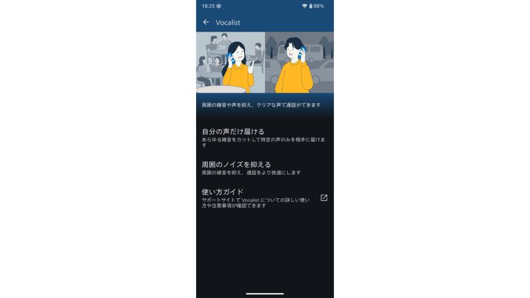 Vocalistは電話アプリではなく、OS側に実装された機能になる。そのため、電話だけでなく、音声を使うサードパーティアプリにも適用される。電話では使えても、LINEには非対応だったというガッカリ感がないのはうれしい。ビデオ会議アプリにも対応しているため、外出先で参加する際にも安心だ。