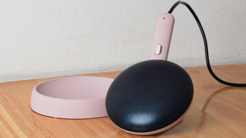 本体サイズは幅160×奥行300×高さ65mm、重量は約500g。コード長は約850mm。セット内容は本体、ボウル、レシピカード、日本語取扱説明書。カラーはピンク。