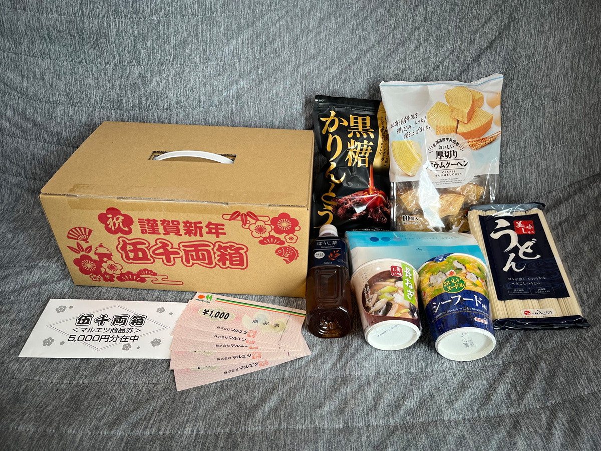 最後にとっておきの福袋をご紹介します。それがマルエツの伍千両箱です。まだ2026年分が販売されるかの発表はないのですが、この伍千両箱がかなりお得なのです。