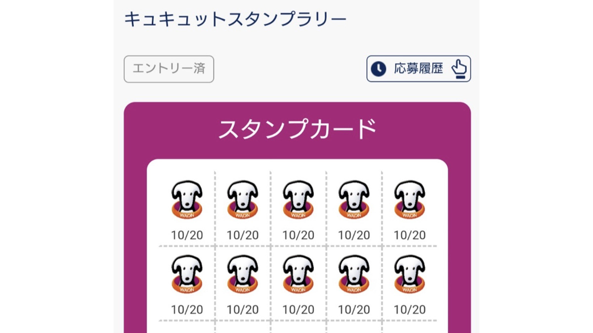 を1点購入ごとに2スタンプ、上記以外のキュキュットは1点購入ごとに1スタンプです。