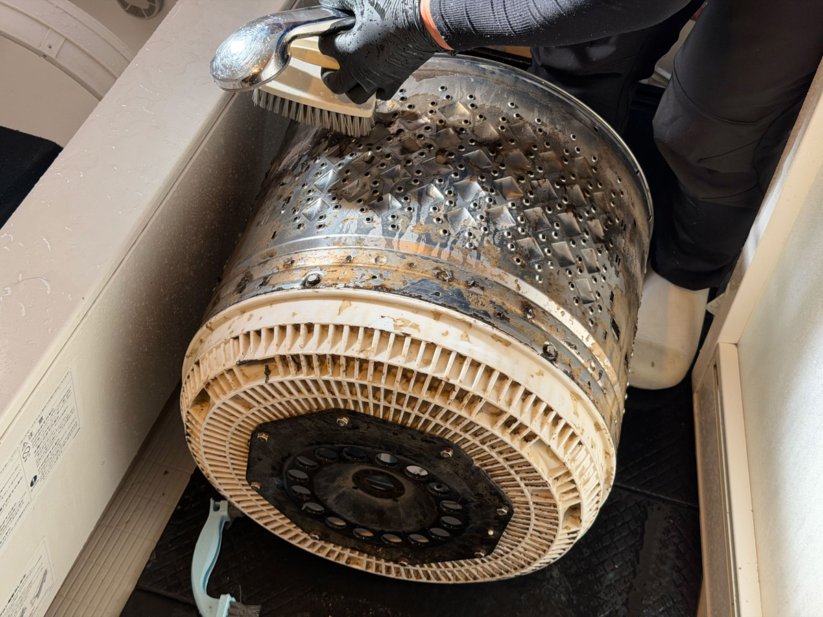 「おそろしい汚れ」!いざ洗浄へ。手洗いでゴシゴシ磨く