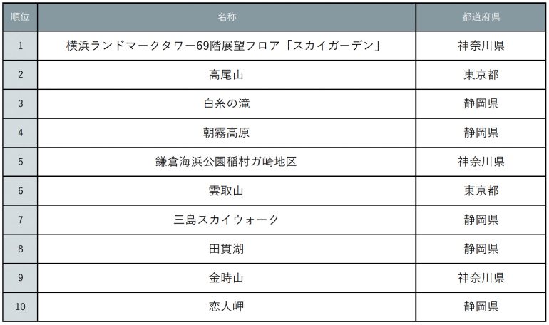 旅行情報サイト「じゃらんニュース」はこのほど、全国の20代~50代の1,052名を対象に「富士山が見られる穴場の絶景スポット」に関するアンケート調査を行い、その結果を「『じゃらん』穴場な富士山絶景スポットランキング」として発表した。