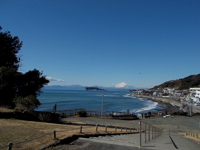 鎌倉市の海岸沿いに位置する「稲村ガ崎」は、富士山と江の島を相模湾越しに望む絶景スポットだ。晴天時には伊豆大島や伊豆の山々まで見渡すことができる。夕刻の「稲村ヶ崎公園」からは、青空から夕焼けのあかね色、そして群青色へと刻々と表情が変わっていく様が見られ、背景に富士山のシルエットが浮かぶ光景は圧巻の眺めだ。