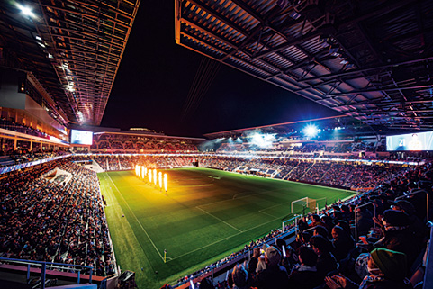 「V・ファーレン長崎」のホームスタジアムは約2万人を収容可能。ピッチ上空を滑空できるジップラインの設置など、施設内には日本初の試みも多数ある。