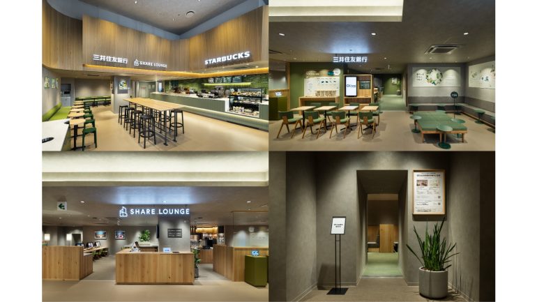 「Olive LOUNGE 新宿通」は銀行とスターバックス、SHARE LOUNGEが一体になったOlive LOUNGE 10号店としてオープン。同行では開業に際して「新宿に行き交う多様な人が心地よく過ごせる場を目指します」とコメントしている。