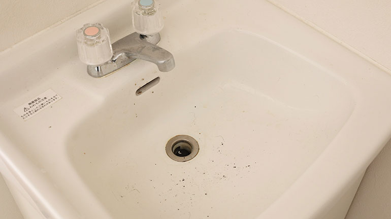 台所のシンクはまめに清掃していても、放置しがちなのが陶器製の洗面台。日々の掃除の優先順位からこぼれ落ちていくうちに、水アカなどの汚れで酷いことになってしまう。