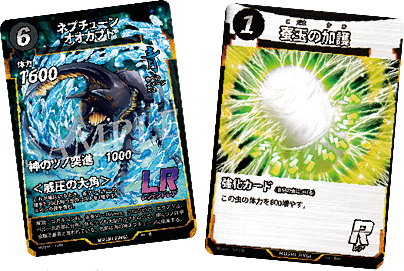 ダイソーの子会社が手掛けた、昆虫がテーマのトレーディングカードゲーム。オリジナルのIPで市場に参入。ゲーム性に加え、昆虫の知識を学べる解説文や、ユーザーが公認大会を主催できる公認サポーター制度の導入などが功を奏し、累計販売数は1400万セットを突破した。人気の高さからNintendo Switchのゲームソフトも発売された。