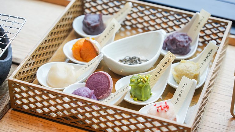 「会話の中で『あんこは温かいものだけじゃなく、冷たいものもおいしいよ』という話が出て、温と冷の2種類のあんフォンデュを用意しました。あつあつのお餅と、冷たいあんこを合わせると、本当においしいんです。