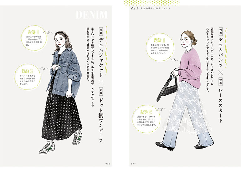 古着やヴィンテージアイテムの掘り出し物を探して、コーディネートに取り入れるのも古着の楽しみ方だが、新たになにかを購入する前に、クローゼットやタンスの中を確認してみようと思ったきっかけが、書籍「古着ひとつでおしゃれになります」の中で目にした、『手持ちの服が輝きを増す』というフレーズだ。