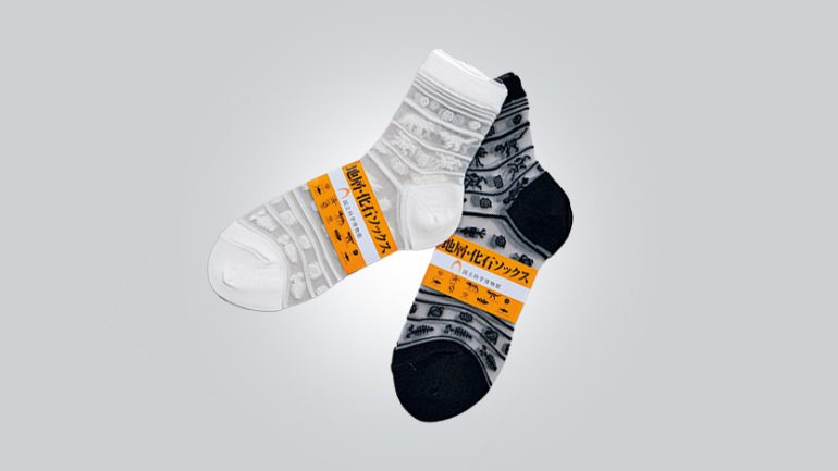 東京・上野の国立科学博物館内のショップで販売中の靴下が地層やそこから出てくる化石を忠実に再現していると話題だ。レースの布地にドット絵で表現している化石はアンモナイト、ティラノサウルス、トリケラトプス、始祖鳥、シーラカンスなど10種類。1194円(1足)。