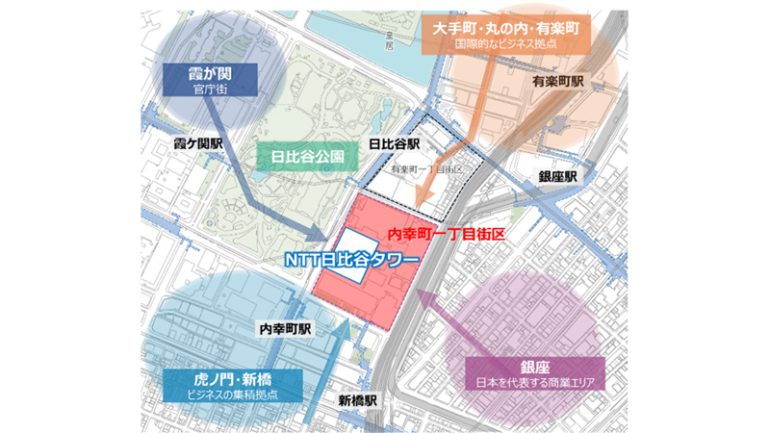 本取り組みの第一弾は、NTT都市開発と東京電力パワーグリッドが事業主として、東京都千代田区にて開発中の「NTT日比谷タワー」(2031年10月末竣工予定、以下「本タワー」)において推進され、本タワーを含む「内幸町一丁目街区※2」にて掲げる次世代スマートシティ実現の一端を担う。