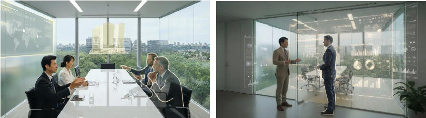 将来的には、打合せで出たアイデアが容易にモデル化され、時には相談相手、時には行動支援(コンシェルジュ)、時には資料を検索・提示する業務コンサルの役割を担うなど、これまで以上にクリエイティブな活動をサポートすることにより、オフィスワーカーのパフォーマンスを最大化する環境を整える。