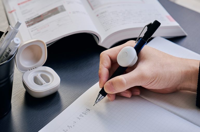 資格取得やリスキリングなど、目標に向かって学習する大人をサポートするIoTラーニングデバイス。通常のペンに装着して使う。専用アプリとの連動で、ペンの動いた時間を「やる気パワー量」として可視化・記録・分析し、学習の三日坊主を防ぐ。「Makuake」の先行販売では応援購入総額目標の6900%に到達。2025年8月までの販売数は1万台を突破。