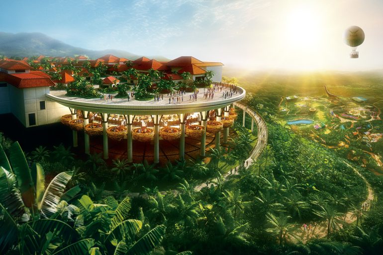 沖縄県北部に開業した大型テーマパーク施設。世界遺産「やんばるの森」に近接する豊かな大自然の中に位置し、21のアトラクションや、レストラン併設のスパ施設も完備する。地域の発展を目指す起爆剤としての役割も期待され、沖縄県の入島数が2025年は過去最高となる見込み。すでに連携ホテルの売上増加など、地域経済への波及効果が顕在化しつつある。