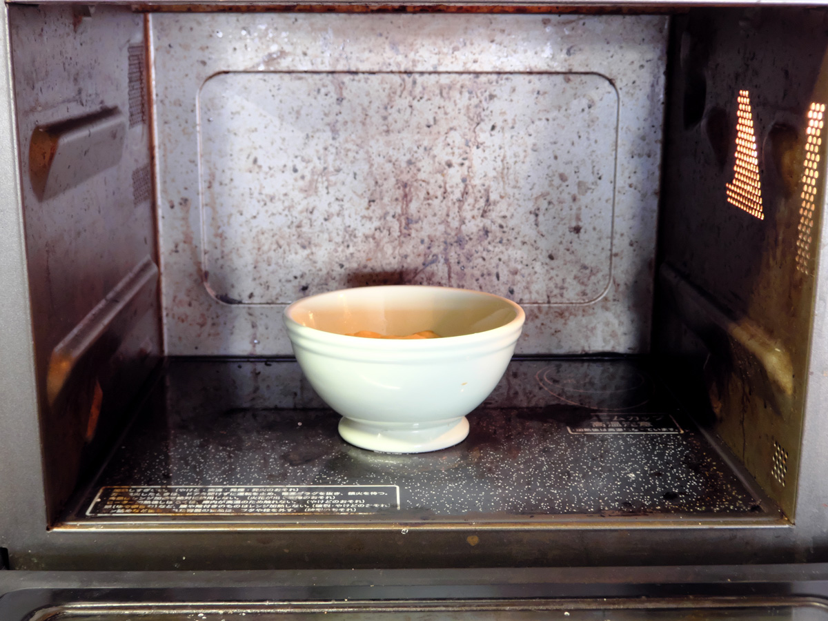 ↑それをまた軽くまぜて、もう一度電子レンジ600Wで30秒加熱。