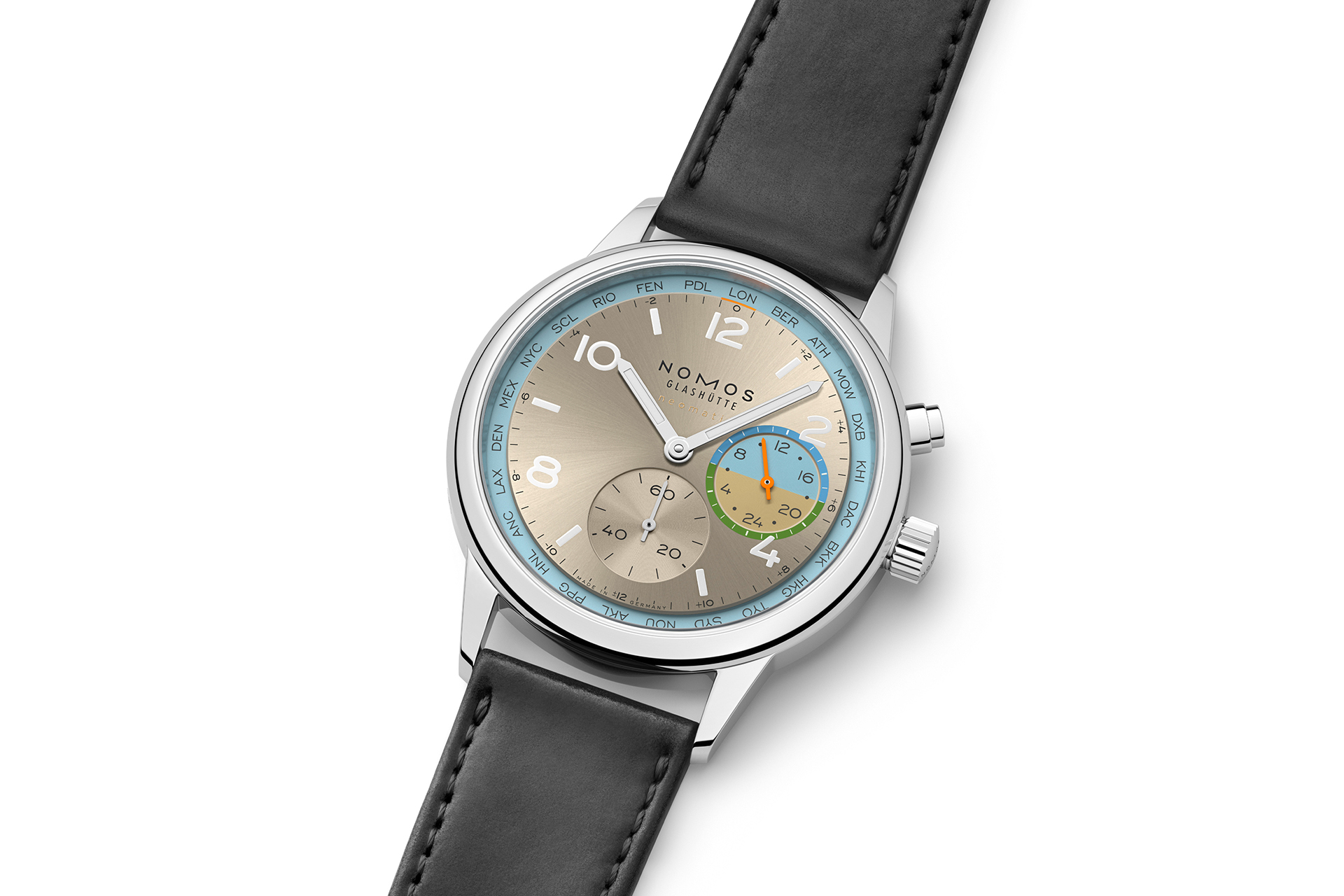 このような旅の仕方から着想を得て、ノモスグラスヒュッテは二種類の新しい175本限定のワールドタイマーを発表した。