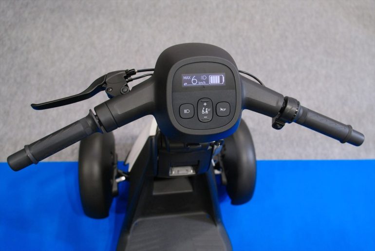 そんな中、試乗車として展示されていたのが電動の1人乗り4輪車『e-SNEAKER(イースニーカー)』。シニアカーとして使えるのにスタイリッシュ、誰でも簡単に乗れる歩行領域モビリティです。