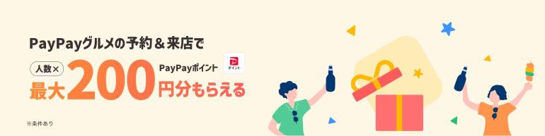 今だと、PayPayグルメではディナーは「人数×200円分」、ディナー以外の時間帯は「人数×100円分」のPayPayポイントがもらえる。