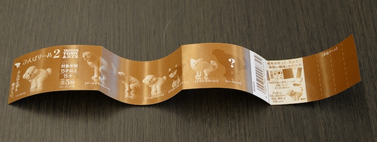 取扱説明書から茶色の紙片をちぎり、丸めてうんちをつくり踏ん張っている犬のお尻付近に置く。うんちをフィギュアとして用意せず、ひと手間かけさせ仕上げる楽しみ方はこれまでのカプセルトイになかった。この体験の提供が支持され、カプセルトイの新たな楽しみ方として受け入れられた。