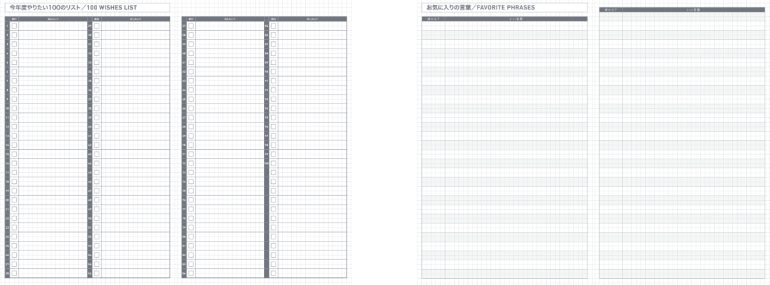 ・「今年やりたい100のリスト」「お気に入りの言葉」