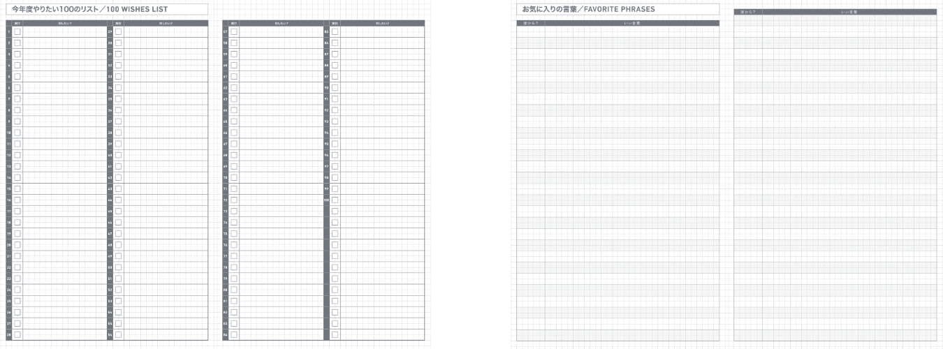 ・「今年やりたい100のリスト」「お気に入りの言葉」
