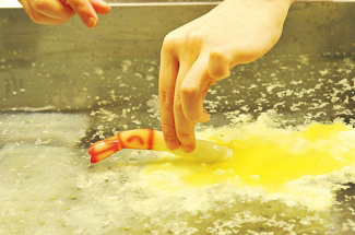創業93年の老舗で昔ながらの蝋を使った食品サンプル作りが体験できる。エビやナスなど好きな具材で天ぷら2 品とレタス1個を製作して、インストラクターの丁寧な指導を受けられるので初めてでも楽しめる。体験は約40分。