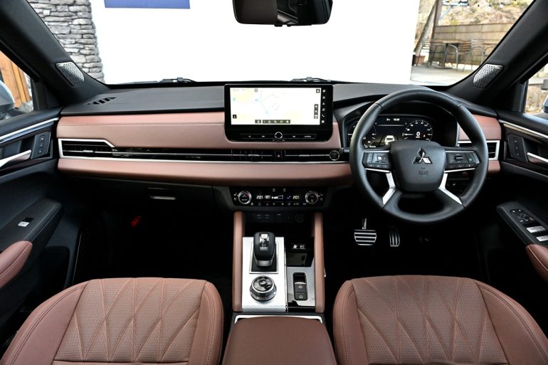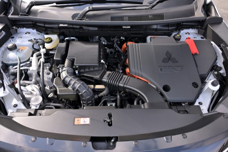 走行性能では、三菱自慢のS-AWCの制御見直しやサスペンションの再チューニングがポイント。ハイレベルでの操縦性と乗り心地の向上を両立させることが狙いである。さらに、タイヤの名柄変更も効いているはずで(BSエコピア→SUV専用のBSアレンザ)、荒れた路面、段差などもじつにしなやかにいなしてくれるのだ。もはや高級車の乗り味だと断言できるほどの進化を見せつけてくれたのである。