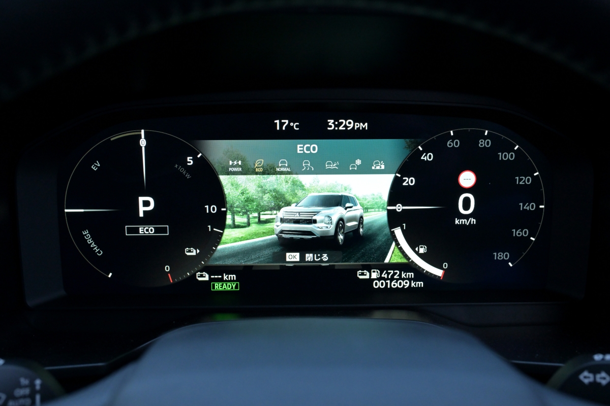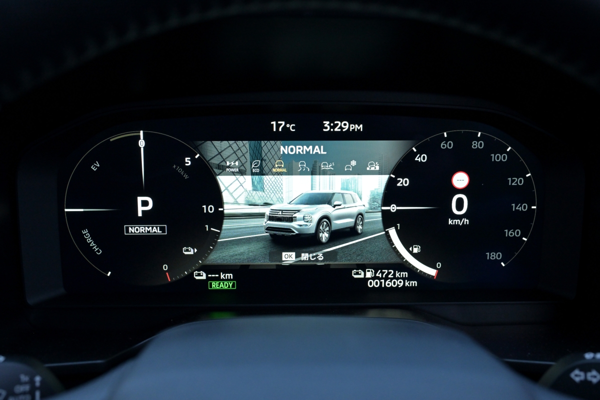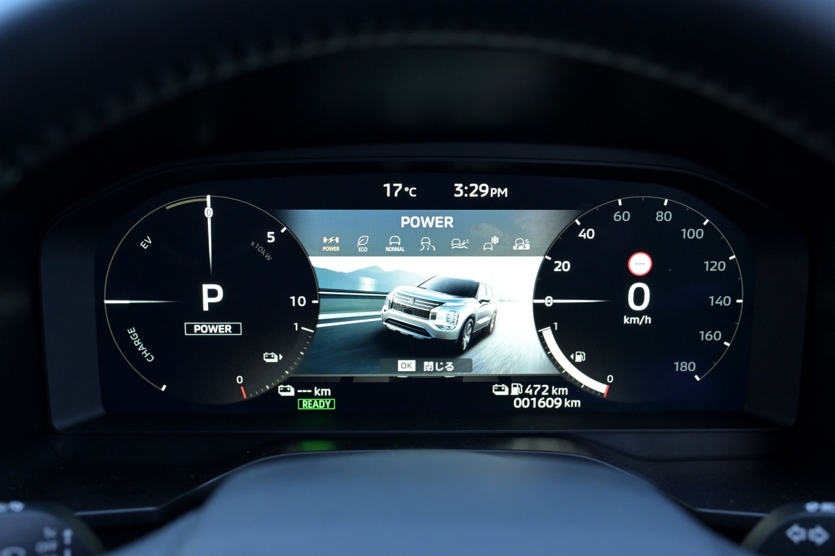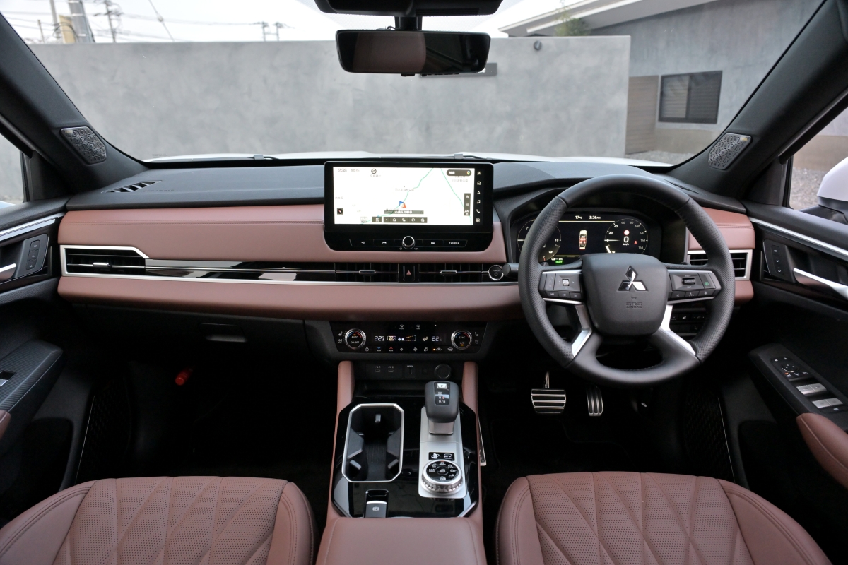 走行性能では、三菱自慢のS-AWCの制御見直しやサスペンションの再チューニングがポイント。ハイレベルでの操縦性と乗り心地の向上を両立させることが狙いである。さらに、タイヤの名柄変更も効いているはずで(BSエコピア→SUV専用のBSアレンザ)、荒れた路面、段差などもじつにしなやかにいなしてくれるのだ。もはや高級車の乗り味だと断言できるほどの進化を見せつけてくれたのである。