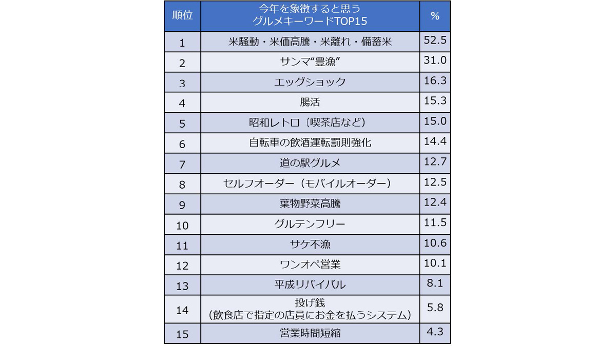 グルメキーワードの1位はお米! 物価の乱高下に振り回された1年