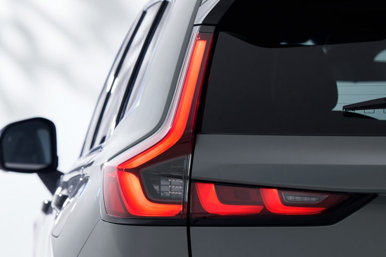エクステリアは、CR-Vの歴代モデルの先進的でスポーティーな骨格を引き継ぎ、よりSUVらしく力強いシルエットに進化した。水平基調のシンプルな造形の中に、力強さと洗練・上質・大人らしさを凝縮して表現。また、CR-Vの象徴である縦型リアコンビネーションランプを踏襲し、リッドランプやナンバープレートを上方に配置することで、上質感とどっしりとした安定感を両立させた。