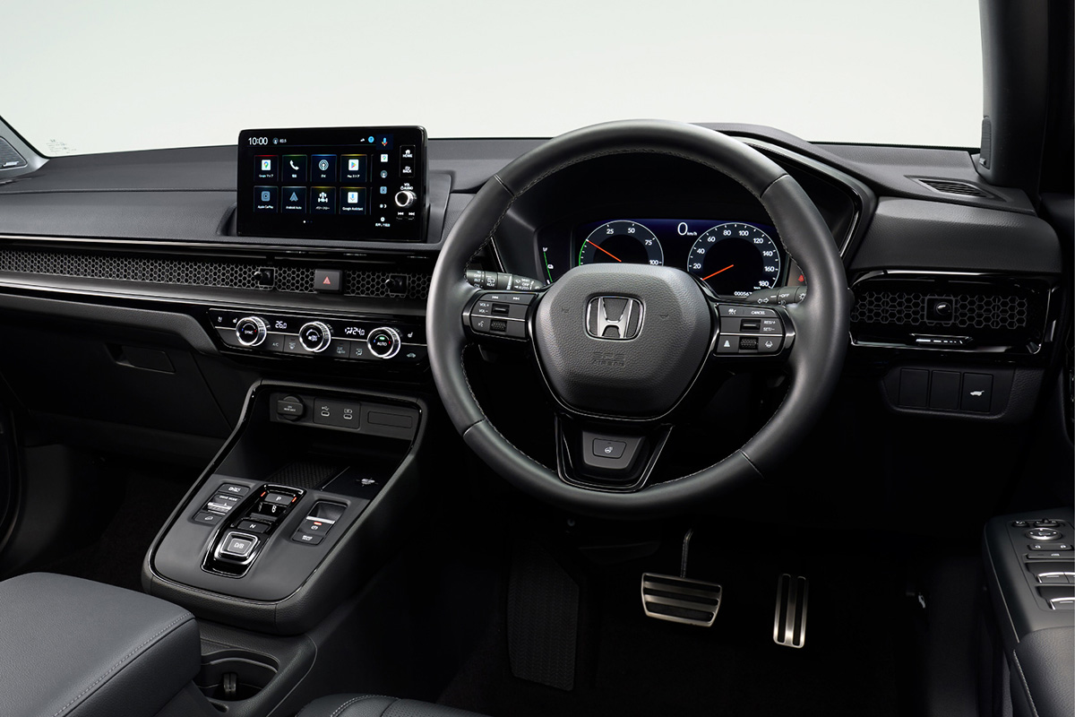 街中でも山道でも安心して運転できるアイポイントとドライビングポジション、気軽に乗り降りしやすいヒップポイントの高さなど、CR-VのDNAともいえる価値を継承し磨き上げた。ステアリング角度を先代モデルの28度から25度に変更し、より垂直方向に近いポジションとすることで、セダンライクで安心して運転を楽しめる角度とするとともに、体格にかかわらずステアリング操作がしやすい運転姿勢を実現している。
